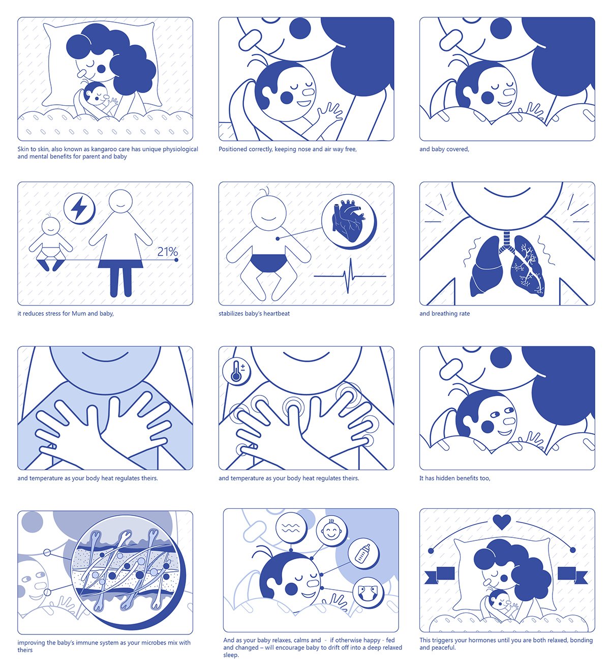 A storyboard I developed for a future animation. A lovely subject for a lovely brand deserves lovely illustrations. My idea was to use an infographic style approach but keep the drawings soft and warm, because the story is all about caring for children and creating a feeling of comfort and kindness.